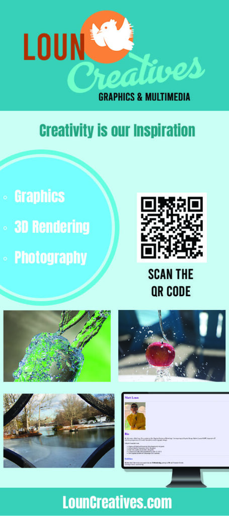 My Takeaway on this assignment was to create a realistic roll up banner that would draw the viewers attention when they walk by. The challenges I’ve faced were figuring out where the images are going to be placed where the viewer looks at, as well as the typography. What I’ve accomplished on my design is I’m very proud of the final result and I’m looking forward to creating more of these in the future.